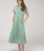 The Lisa Dress in Green Flower Check. This midi dress has a crisp, shirt collar and flattering sleeves, while its elastic waistband ensures both style and comfort for all-day wear. Wilson Location