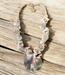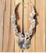 What makes this necklace unique? * 18" w/ 3" Extender * Seashell Tulip Charms * Lucite Bead * Abalone Shell Pendant * Faux Leather Cord in Light Beige * Lobster Claw Clasp