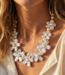 Bijoux Envie #N4451 Flower Collar Pearl Necklace