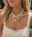 Coastal statement necklace featuring ivory glass pearls, seashell charms, and a starfish pendant Wilson Location