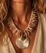 18" + 3" Extender ▫️Weight: 3 Ounces ▫️Stunning Beachy White Coral Lucite ▫️Peacock Abalone Clam Shell Pendant ▫️Vintage 14k Gold Plated Hardware ▫️Lobster Claw Clasp ▫️Artisan Double Hand Knotted