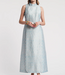 A statement-making fusion of modern style and vintage charm, this full-length, sleeveless dress has a unique column silhouette with a layered construction, a mock neck, and pockets. ATLANTIC BEACH and wilson location