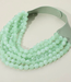 Chunky Beaded Layered Necklace Faux Leather Neck Magnetic- Mint -SKU JKN-140