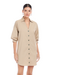The Phoebe Lantern Sleeve Shirtdress offers a modern take on a classic shirtdress silhouette.