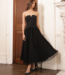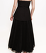Strapless mixed fabric maxi gown Small v neck line detail Drop waist overlay Adjustable belt at waist Center back zipper Fabric: Gaberdine / Tulle Lined Dry clean only Wilson Location