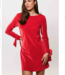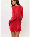 Long sleeve mini dress Slight boat neckline Tie cuff detail Fabric: Stretch Velvet Lined Center back zipper Wilson Location