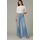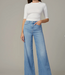 A high rise and slim fit through the waist and hip with a full-length wide leg.