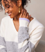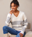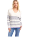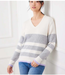 Soft and cozy, this long-sleeve sweater features a flattering V-neckline and bold horizontal stripes. Designed with minimal wool for a lightweight, comfortable feel, it’s perfect for effortless everyday style.