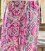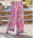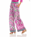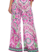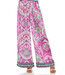 1hese wide-leg pants feature a striking Italian tile border print in pink and green hues on smooth crepe fabric.