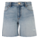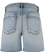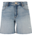 These high-rise shorts feature a longer inseam, medium wash, and subtle distressing on the front and back, and raw hem for a stylish, laid-back look. Perfect for everyday wear. Wilson location