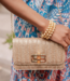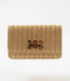 Straw foldover clutch with optional crossbody strap 5”H x 8” W x 1 ¾” D Fits most iPhones (Max models excluded) Gold hardware and chain strap with 22” drop Wilson Location