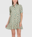The Liv Dress is a playful mini dress with a tailored bodice and a relaxed drop-waist silhouette. It features short puff sleeves with cuff detailing, a classic shirt collar, and a partial button placket down the front. Wilson Location