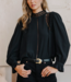 The Fiona Top in Black is an effortlessly elegant blouse designed with delicate lace trim, soft gathers, and billowing sleeves that add romantic movement. Wilson location