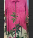 A Vibrant pink shirt dress with a bold palm print. Featuring a classic collar, button down front, and relaxed fit. Atlantic Beach Location