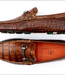 Hand Finished Alligator Grain Leather Leather Wrapped Gunmetal Finish Horse Bit Glove Leather Lining Heel to Toe Comfort System w/ Athletic Footbed Camo Rubber Driving Sole Hand Sewn on the Bill Last