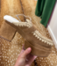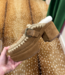 The platform loafer is expertly handcrafted in luxurious suede and soft sheepskin with hand-crochet wool stitching. Incredibly comfortable and hard-wearing with a chunky heel and rubber sole.