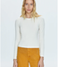 Fitted lightweight rib knit tee with an elevated, wardrobe essential sensibility. Designed with a crewneck, long sleeves, and a hem length that grazes the waistband for a sleek silhouette.