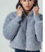 The Bobbi Jacket is a slate blue sherpa jacket designed for cozy ease. Plush Faux Sherpa: 100% Tencel Wilson and Atlantic Beach Spot clean with damp cloth, air dry. wilson location