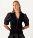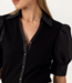 Mixed-media design with a ribbed knit body and crisp cotton poplin sleeves, collar, and placket trim Slim-fitting silhouette; stretch knit body creates a flattering, close-to-the-body shape Wilson Location