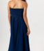 The Runa Dress is a striking strapless silhouette that highlights the depth and texture of our newly developed indigo gauze.