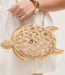 Turtle-shaped woven silhouette, Leilani Crossbody. Playful, refined crossbody bag with a round woven body, inner lined pouch, snap closure and chain strap. Wilson Location
